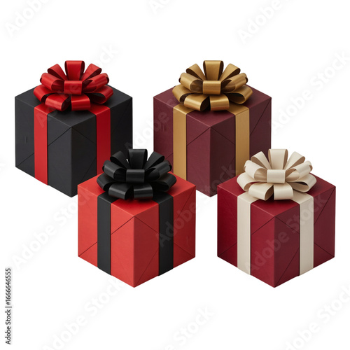 © HAFIZA, Obraz premium Four luxury gift boxes arranged in a row on transparent background
