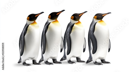 © afridwi, Fototapeta premium Four Majestic King Penguins in a Row: Antarctic Wildlife