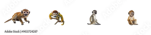 © Maestro, Obraz premium Four monkeys isolated, different types and poses. cut out transparent