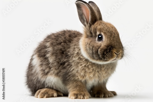 Fototapeta premium Four month old rabbit sitting on white background. Generative AI