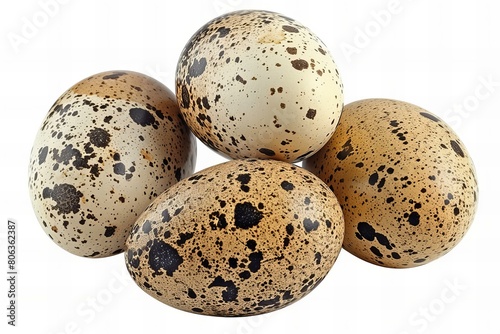 Fototapeta premium Four Natural Quail Eggs with Unique Spotted Patterns