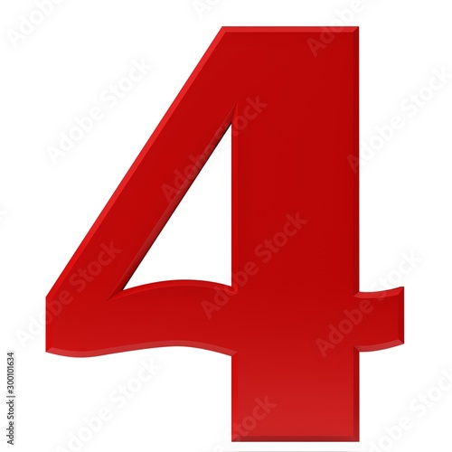 © Anja, Fototapeta premium 4 four number red 3d sign