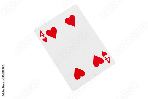 © GreenThumbShots, Obraz premium Four of Hearts Playing Card on Green Poker Table