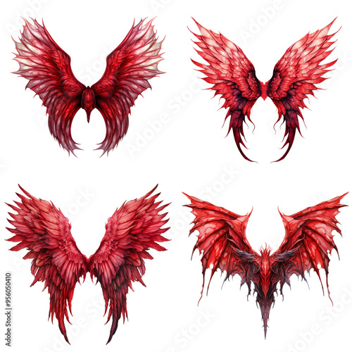 © Fomo Creative, Obraz premium Four Pairs of Crimson Wings in Different Styles
