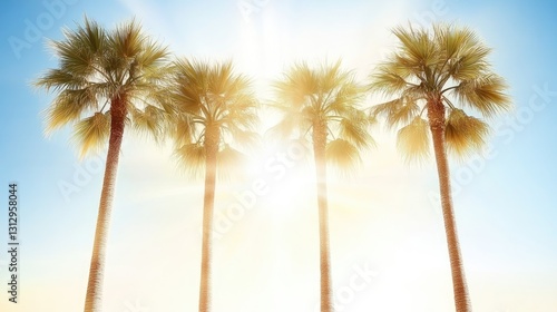 © LesaMurina Coll, Obraz premium Four Palm Trees, Sunny Sky