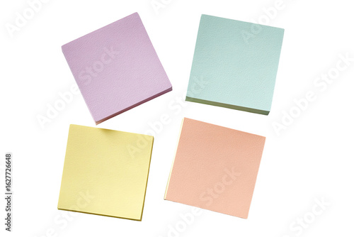 Fototapeta premium Four pastel-colored sticky notes arranged in a loose group