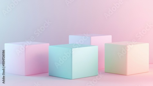 © chesleatsz, Obraz premium Four Pastel Cubes on a Pink Gradient Background