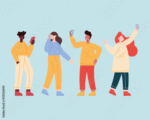 Obraz premium four persons using devices