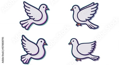 © Yudi, Obraz premium Four pigeon illustrations in flight