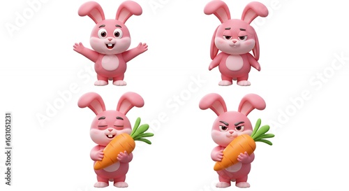 Naklejka premium Four pink cartoon rabbits with different expressions