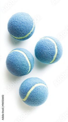 © Montaha Hossain, Fototapeta premium Four Playful Blue Tennis Balls on a White Background. Perfect for Sports Enthusiasts and Outdoor Activities. Ideal for Tennis, Playgrounds, and Games. A Great Addition to Any Sports Collection.