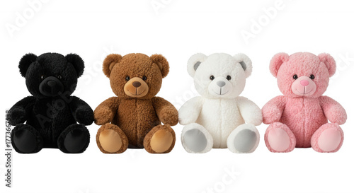 Obraz premium Four plush teddy bears isolated on a transparent background
