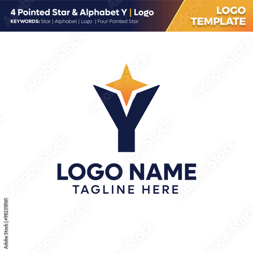 Obraz premium Four Pointed Star & Letter Logo Template