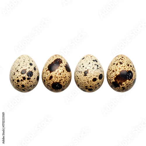 © AKANDA, Fototapeta premium Four quail eggs isolated on transparent background
