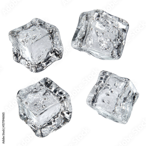Obraz premium Four Realistic Ice Cubes on Transparent Background