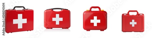 Obraz premium Four red first aid kits, white isolate background
