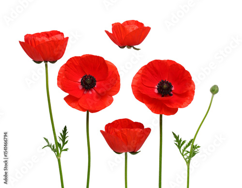 © MdAbdur, Obraz premium Four red flowers with green stems