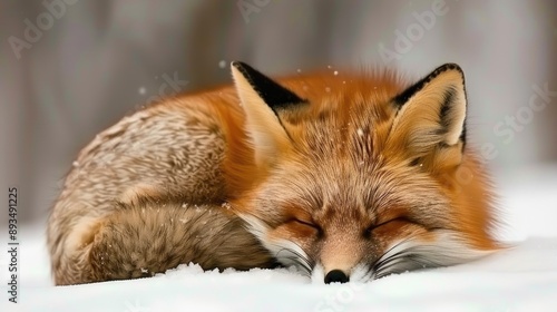 © lililia, Obraz premium Four red foxes stand in a group, partially hidden by lush greenery, with their heads turned to look off-camera