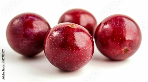 Fototapeta premium Four Red, Shiny, Round Fruits on a White Background