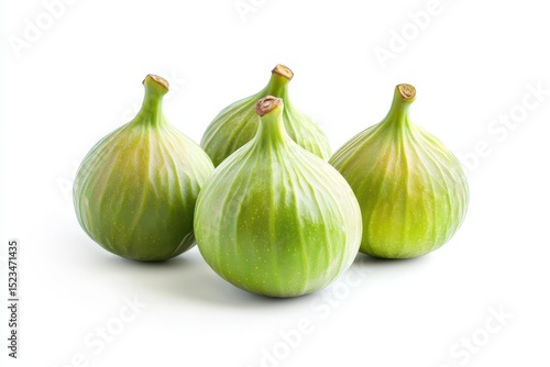 © Abir, Obraz premium Four ripe green figs, isolated on white background, showcasing their smooth skin and vibrant color