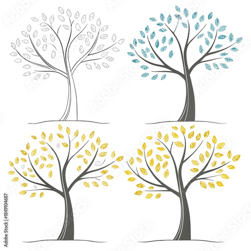 © LAXMI, Obraz premium Four Seasonal Trees with Colorful Leaves Illustration Set for Design Projects