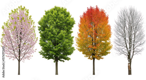 © Hala, Fototapeta premium Four seasonal trees with transparent background showing spring, summer, autumn, and winter foliage