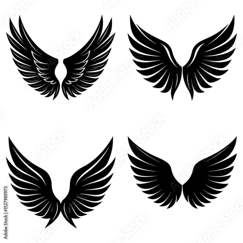 Fototapeta premium Four sets of black wings in different positions on a white background vector illustration art