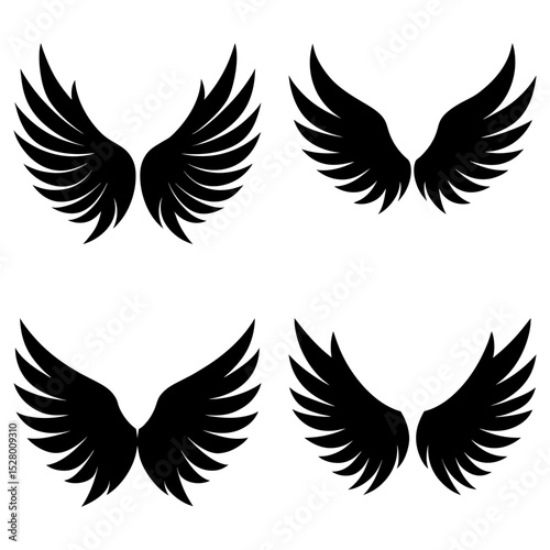 © VectorGenius, Fototapeta premium Four sets of stylized wings displayed in a symmetrical arrangement on a white background illustration