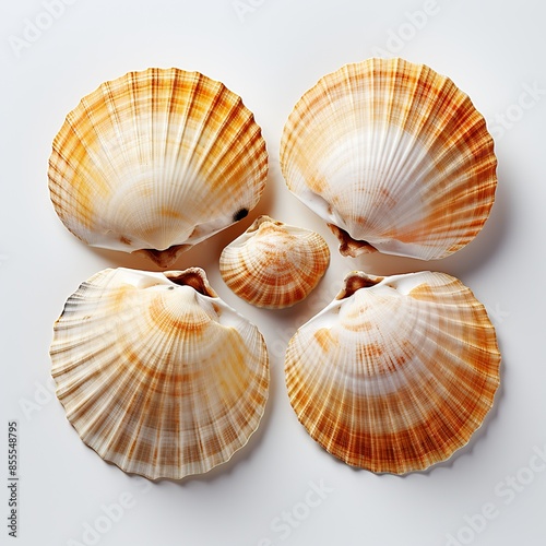 © Somad, Obraz premium Four shells with a yellow and white pattern