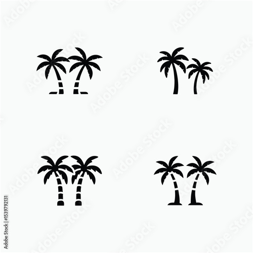 Fototapeta premium Four Silhouettes of Tropical Palm Trees. Simple, black silhouettes of palm trees against a white background.