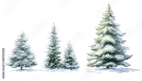 © Ivann, Fototapeta premium Four snow-covered Christmas trees