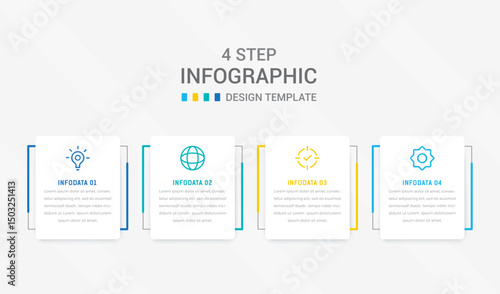 © Iconicly, Obraz premium Four Step Infographic element design Vector template for presentation. process diagram and presentations step, workflow layout, banner, flow chart, info graphic vector illustration.