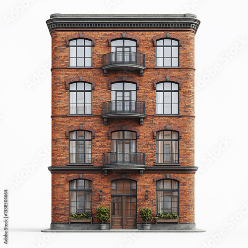 © Thanthara, Fototapeta premium four story brick building with large windows and balconies