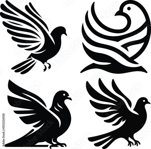 © mohammedShorab, Obraz premium Four stylized black and white dove illustrations in different poses