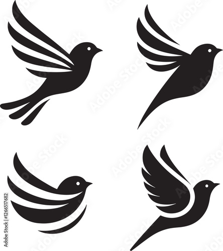 © Black_Studio, Fototapeta premium Four stylized black birds in flight.