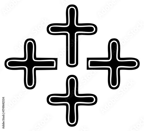 Fototapeta premium Four stylized black Christian crosses with white outlines arranged in a symmetrical pattern