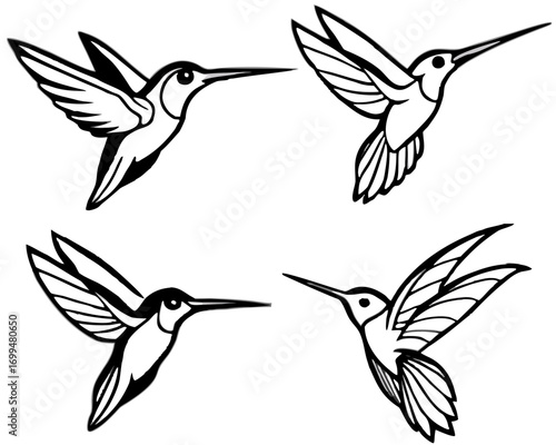 Obraz premium Four stylized hummingbird silhouettes in flight on white background