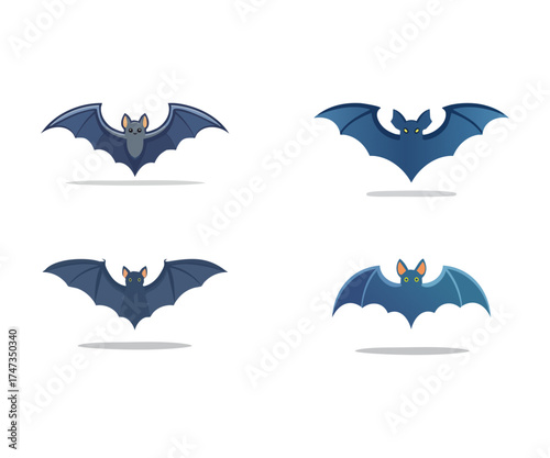© Duan Akamsad, Naklejka premium Four stylized illustrations of bats with outstretched wings, each with a unique design.
