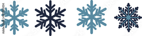 Obraz premium Four stylized snowflakes in blue and dark blue on white background on...