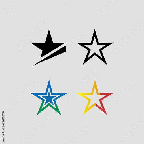 Obraz premium Four stylized star graphics with black blue green yellow and red colors symbol icon