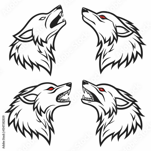 Obraz premium Four stylized wolf heads howling and snarling design elements
