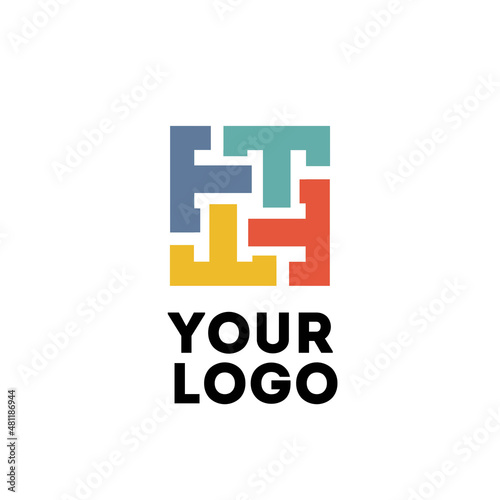 Obraz premium Four T letters logo design. Square logotype shape. 2d vector illustration.