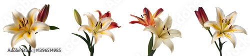 © Keshawn, Fototapeta premium four tiger lily flowers on white background