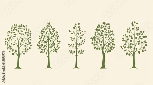 © Mufarokah, Obraz premium Four Trees Silhouettes on Light Beige