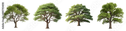 © Creative 1M, Fototapeta premium Four trees with different green foliage isolated on transparent background