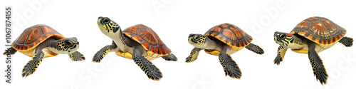 © TCC Sport, Obraz premium Four turtles are shown in a row, each with a different color and pattern