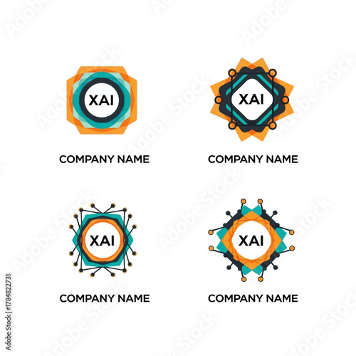 Fototapeta premium Four unique abstract logo designs with XAI text and company name.