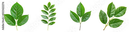 Obraz premium Four vibrant green leaves isolated on transparency background