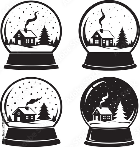 © SALMA, Fototapeta premium Four vintage christmas snow globe scenes silhouette