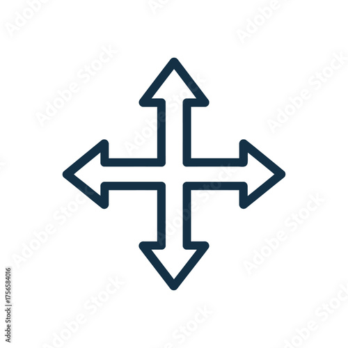 Obraz premium Four way arrow icon representing directional choices and movement.